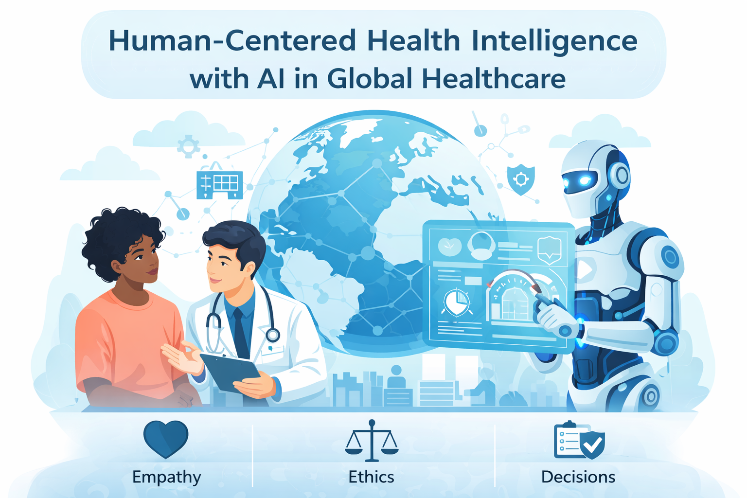 Saya mengusulkan sikap human centered health intelligence sebagai landasan pengambilan keputusan dalam penerapan AI di bidang kesehatan global.